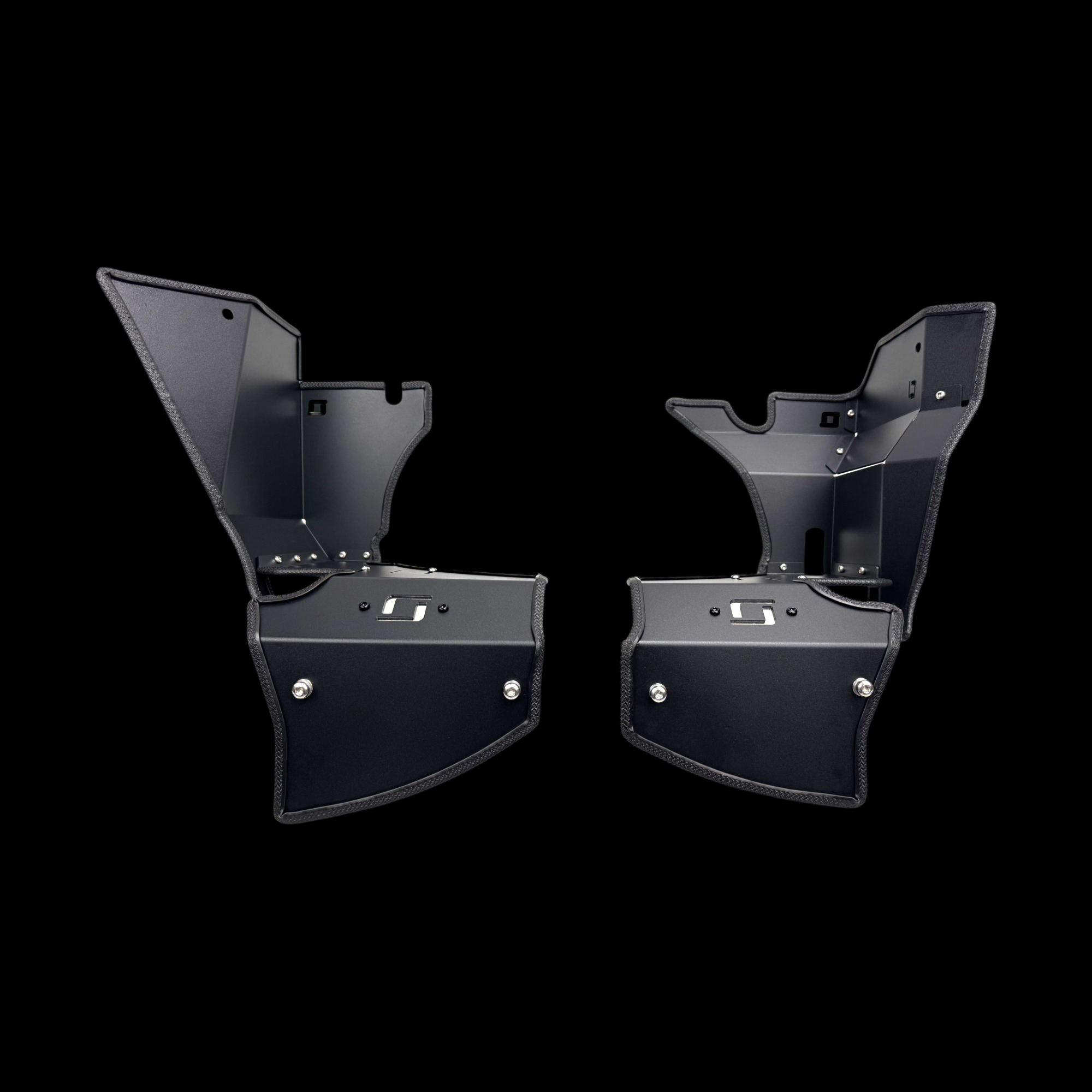 The Airboxes are laser cut AL panels with high complexity CNC bends assembled with Stainless steel fasteners, finished with layer of High-Quality Black powder coating.